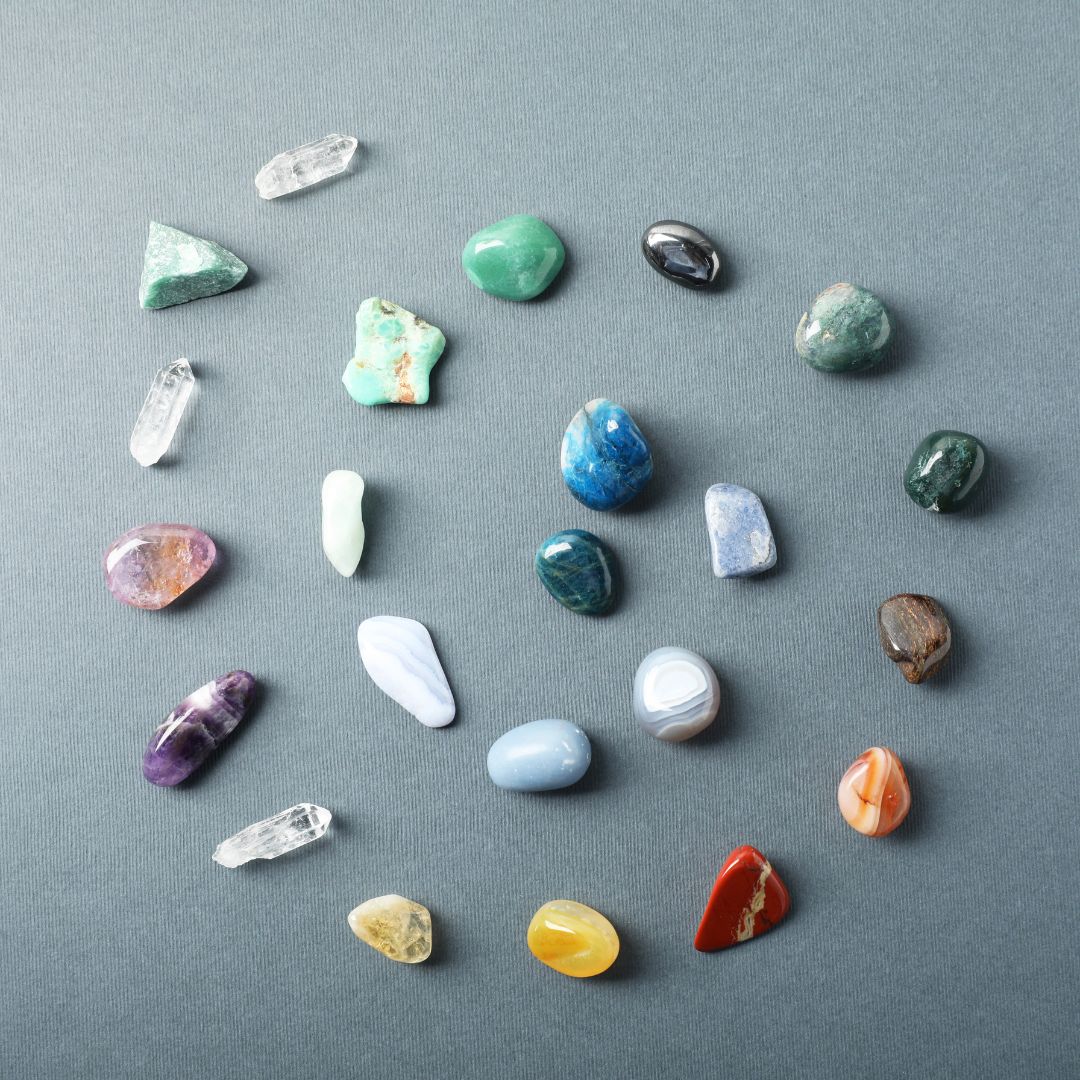 „Steine begleiten, schützen, stärken & erden. Erfahre mehr über die verschiedenen Steine in meinem ausführlichen Steinführer.“