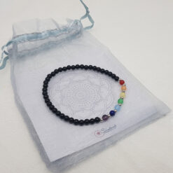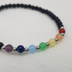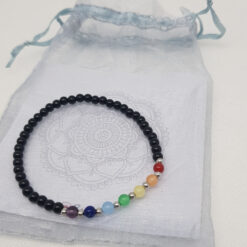 Das zarte Armband mit schwarzem Turmalin und sieben Chakra Edelsteinen lässt sich perfekt kombinieren.