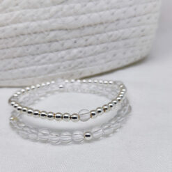 Das Armbandset „Lichtschimmer“ vereint elegante Kristalle, mit Silber überzogenen Perlen zu einem Schmuckstück von einzigartiger Kraft und Schönheit. Diese sorgfältig ausgewählte Kombination harmonisiert die Energiebalance und fördert die Reinigung, Stärkung und den Schutz des Energiefeldes.