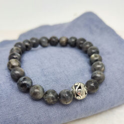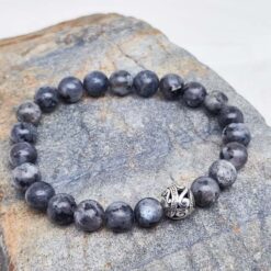 Die runden Steine liegen angenehm auf der Haut auf. Das Armband ist elastisch, für ein einfaches An- und Ausziehen.
