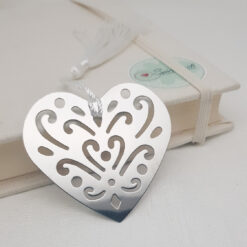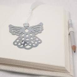 Das Lesezeichen mit symbolischer Bedeutung. Es ist in zwei verschiedenen Designs erhältlich, mit einem Engel oder Herz.