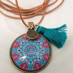 Halskette Cabochon „Zentrum“ mit einem Mandala hinter Glas und einer Quaste.