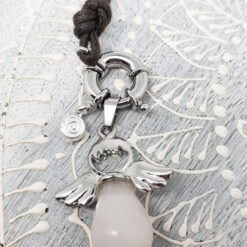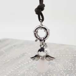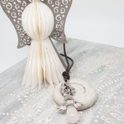 Filigrane Halskette mit einem Engel aus Rosenquarz und einer kleinen Silberspirale