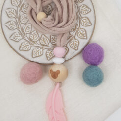 Wunderschönes und praktisches Accessoire für Mamis. Während des Stillens/Fläschchen geben, oder auch während das Baby getragen wird, kann es mit dieser Kette spielen.