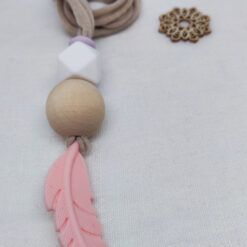 Diese trendige Halskette schmeichelt mit dem weichen Stoffband (aus Baumwolle) schön um den Hals. Sie sieht modisch aus und die Feder ist aus Silikon, so dass auch Ihr Baby Freude daran hat.