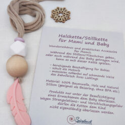 Wunderschönes und praktisches Accessoire für Mamis. Während des Stillens/Fläschchen geben, oder auch während das Baby getragen wird, kann es mit dieser Kette spielen.