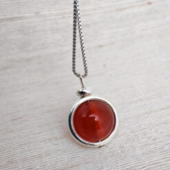 Zierliche Halskette mit einer Edelsteinperle (Achat rot) eingefasst in S925 Sterling Silber.