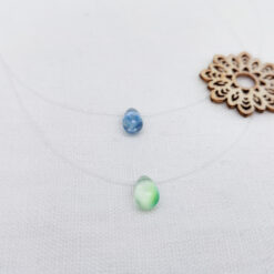 Wunderschöne filigrane Halskette mit einem grünen oder blauen Meerglastropfen.