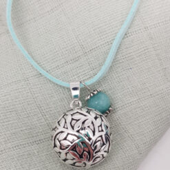 Die Klangkugeln mit magischen und beruhigenden Klängen sowie einem Auqamarinanhänger.