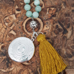 Der Anhänger und die Quaste sind an einem kleinen Karabiner, so dass dieser nach Wahl auch ausgewechselt werden kann.
