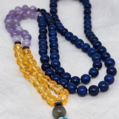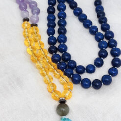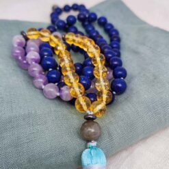 Die Malakette besteht aus 108 sorgfältig ausgewählten Perlen, eine Zahl von grosser Bedeutung in der Hindu-Tradition, die die 12 astrologischen Häuser mit den 9 Planeten symbolisiert. Eine zusätzliche Perle, bekannt als Sumeru oder Meru, erinnert uns an die Lehrer im Leben.