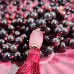 Kette mit 108 Steinperlen (8 mm), Länge ca. 110 cm plus roher Granat mit Quaste 10 cm