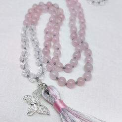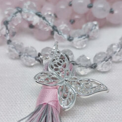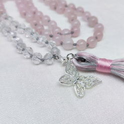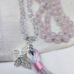 Kette mit 108 Steinperlen (8 mm), Länge ca. 100 cm plus Quaste und Schmetterlingsanhänger.