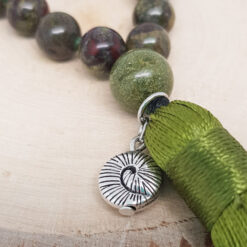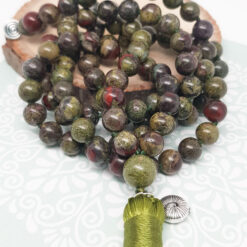 Die Malakette „Waldbaden“ vereint die tiefe Kraft des Drachenblut Jaspis mit der harmonischen Energie des Waldes. Dieser besondere Edelstein, mit seinen tiefroten Tönen kombiniert mit erdigen Grüntönen, spiegelt die Farben und Ruhe eines Waldbodens wider. Der Drachenblut Jaspis fördert deine Kreativität, stärkt dein Selbstbewusstsein und hilft dir, deine Ziele mit Entschlossenheit zu verfolgen. Er lädt dich dazu ein, auf dein Herz zu hören und ermutigt zu Liebe, Mitgefühl und Vergebung – Qualitäten, die dir auf deinem Weg zu innerem Frieden und Selbstentfaltung dienlich sind.
