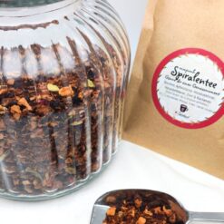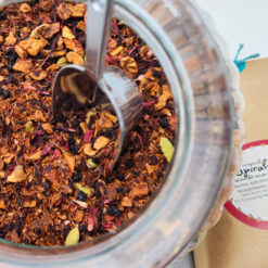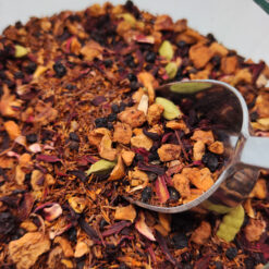 Zutaten: Rooibos, Apfelstücke, Hibiskusblüten, Holunderbeeren, Zimt & Kardamon.