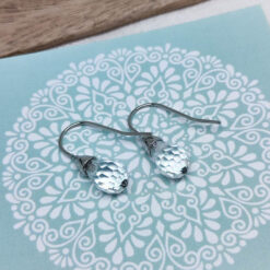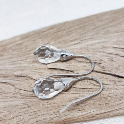 Diese zierlichen Ohrhänger vereinen schlichte Eleganz mit zeitloser Raffinesse. Der facettierte Kristalltropfen fängt das Licht auf faszinierende Weise ein und verleiht deinem Outfit eine subtile Leichtigkeit.
