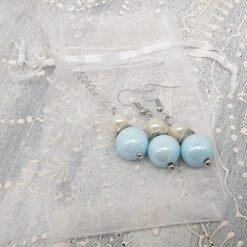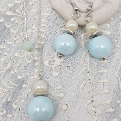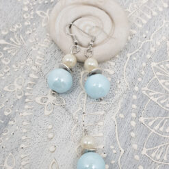 Dieses schöne Schmuckset „Hellblau“ besteht aus einer Kette und Ohrhänger.