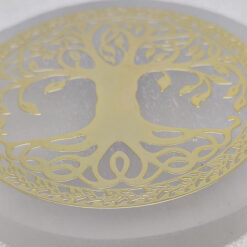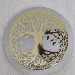 Nutze die kraftvolle Energie dieser Selenit-Platte, verziert mit einem goldenen Muster, um deine Heilsteine und Schmuckstücke mit Reinheit und Klarheit zu energetisieren oder zur Dekoration.