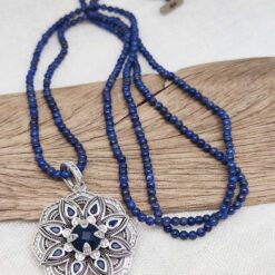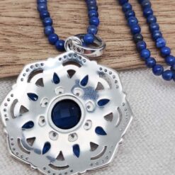 Die Kette „Blaue Lotusblüte“ vereint die Symbolik des Lotus mit der magischen Ausstrahlung des Lapislazuli. Der zarte Silberanhänger in Form einer Lotusblüte steht für innere Ruhe, Erneuerung und spirituelle Stärke. Ein blauer Zirkon in der Mitte des Anhängers verstärkt diese Botschaft und erinnert an die Klarheit eines stillen Gewässers.