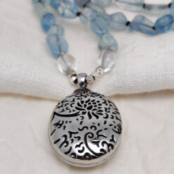 Im Mittelpunkt der Kette steht ein silberfarbenes Medaillon, zart verziert mit einer Lotusblüte. Das Medaillon lässt sich öffnen und birgt Raum für ein kleines Foto, eine persönliche Botschaft oder ein liebevoll gefaltetes Zettelchen. Zierlich und geheimnisvoll – ein kleiner Herzensschatz, getragen nahe bei dir.