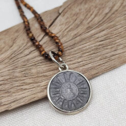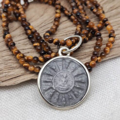 Der Edelstein Tigerauge macht diese Kette zu einem besonderen Kraftstück. Bekannt als „Schutz- und Mutstein“ unterstützt er innere Stärke, Klarheit und Selbstvertrauen. Er hilft, Herausforderungen mit Zuversicht zu begegnen, und verleiht ein Gefühl von Sicherheit und Stabilität. Seine schimmernden goldbraunen Nuancen spiegeln die Energie der Erde wider und schenken dem Träger Erdung und Konzentration. Tigerauge schützt vor negativen Einflüssen und unterstützt dabei, Entscheidungen mit klarem Verstand zu treffen und Ziele entschlossen zu verfolgen.