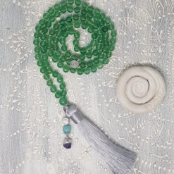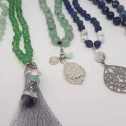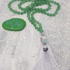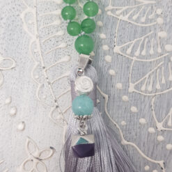 Steinkette ca. 80cm, Quaste 10cm und Anhänger ca. 3cm, Jadeperlen 6mm.