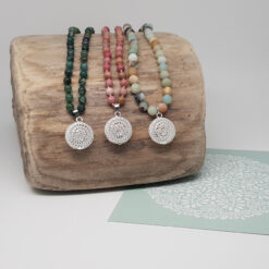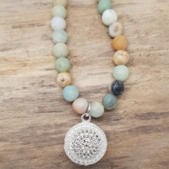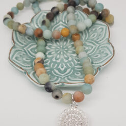 Eine wunderschöne Amazonitkette mit einem Mandalaanhänger.