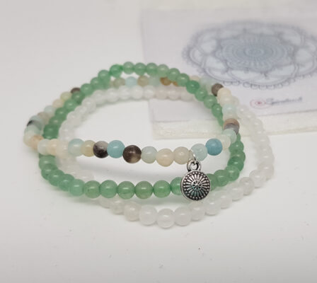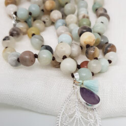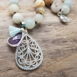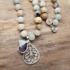 Amazonit Steinkette mit einem zarten Tropfenanhänger aus Silber (S925) und einem kleinem Amethyst Anhänger.