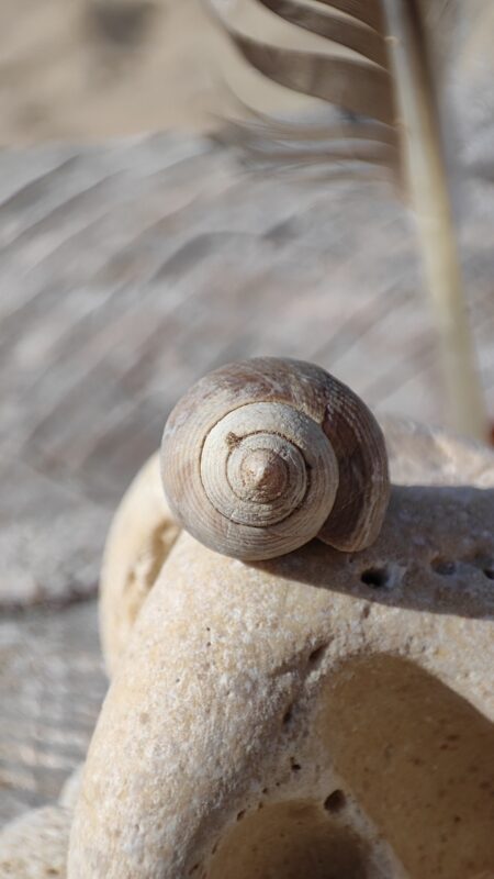 Die Spirale erinnert mich daran, dass aus etwas ganz Kleinem etwas Bedeutungsvolles wachsen kann. Ein stiller Moment, ein Sonnenstrahl oder Windhauch auf der Haut, die leuchtenden Farben einer Blumenwiese, ein zarter Duft, ein Stein in der Hand, eine Tasse Tee, eine Umarmung, ein Wort zur rechten Zeit, ein Lächeln, ein Geschenk.